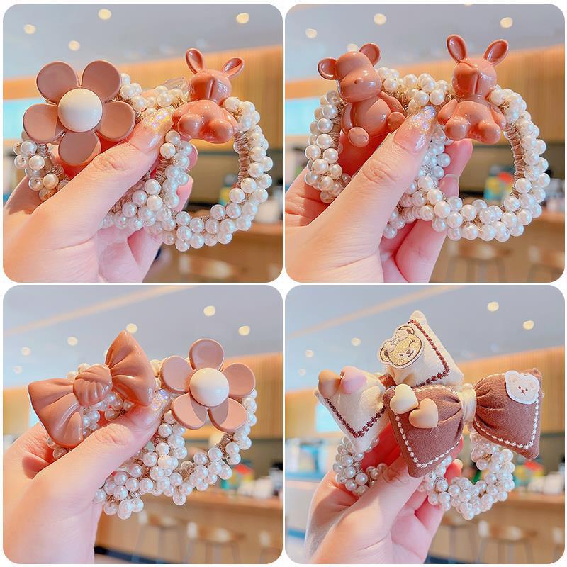 韓国版のかわいい皮筋の子供の乳のカレー色の団子の頭の真珠のシュシュの頭の縄の王女の頭の飾りのゴムの卸売り