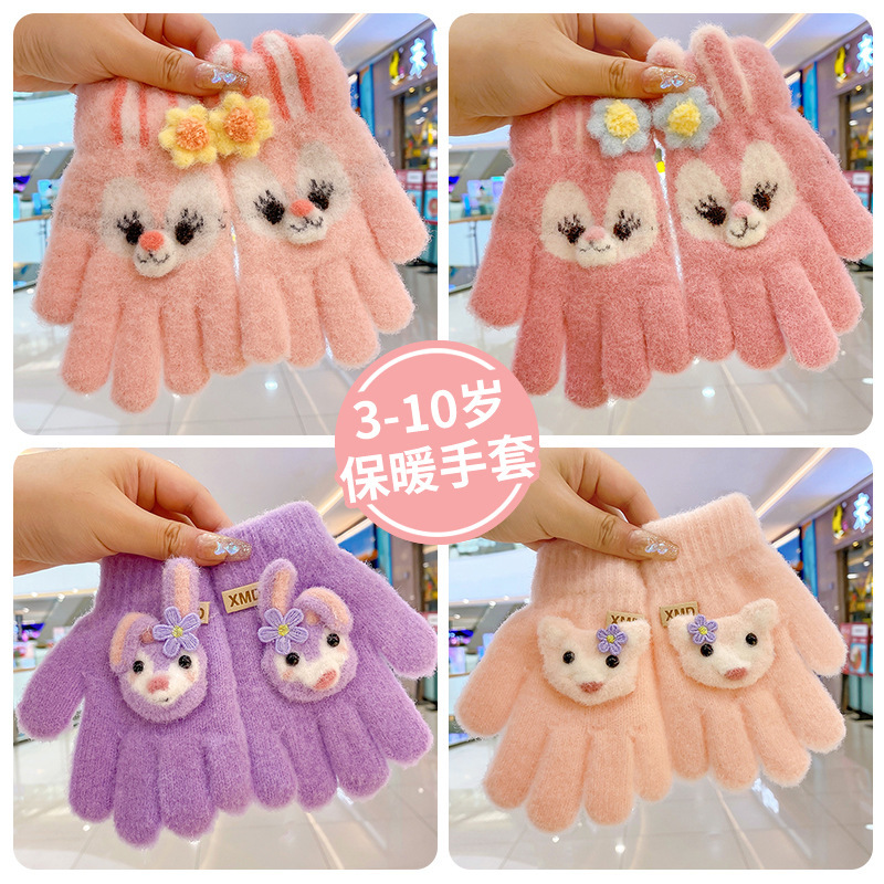 子供用手袋秋冬女の子かわいいニット五本指保温指男の子女の子漫画赤ちゃん五本指カバー