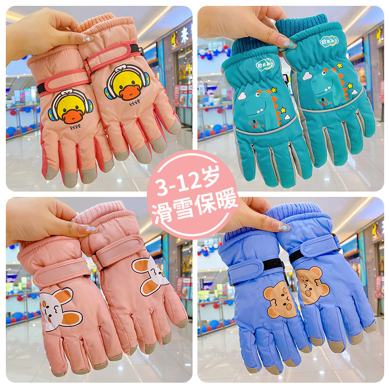 2022新型子供用スキー手袋冬の防水保温とベルベットの厚い男の子と女の子の自転車の凍結防止防寒