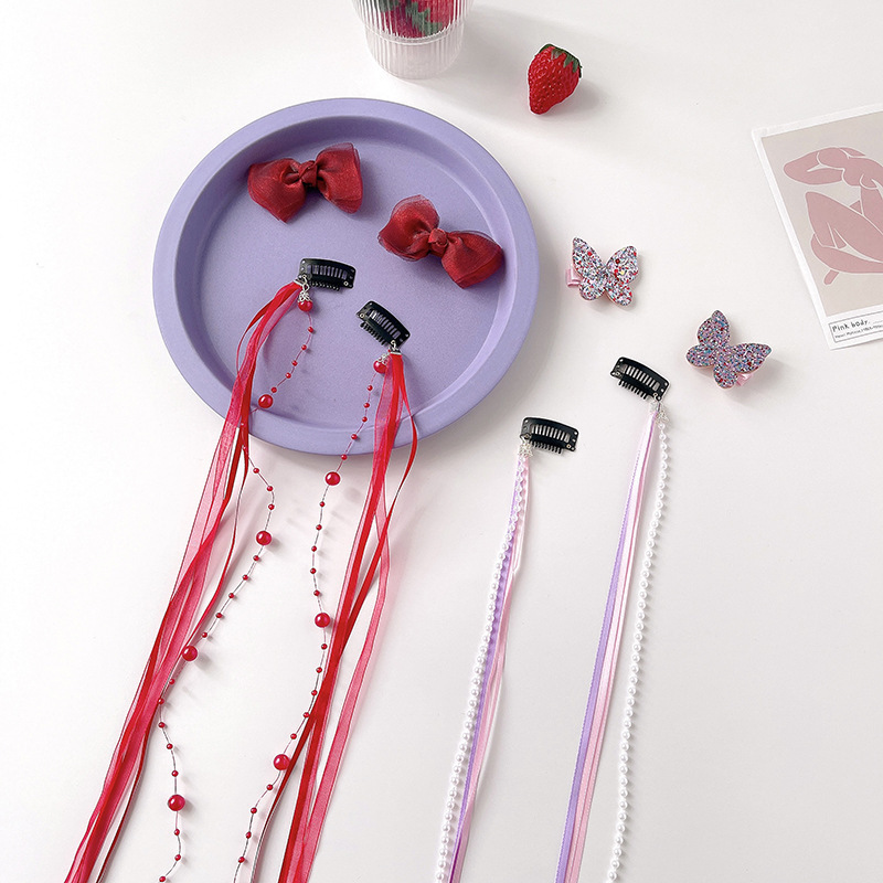 新しい子供の蝶結びのリボンのヘアピンの女の子の古風な漢服のフリンジの頭飾りの新しい後頭部のヘアピンのトップクリップ