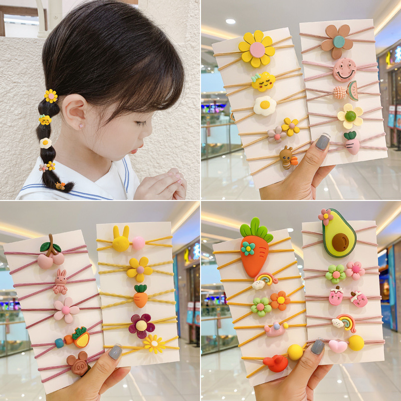 新しい韓国のかわいい子供の果物のシュシュの女の子は馬尾の皮の筋の髪の縄の女の子の髪飾りの対の頭の縄を刺します。