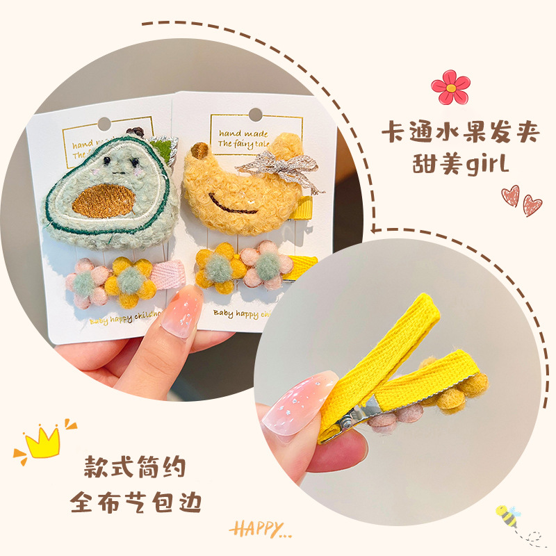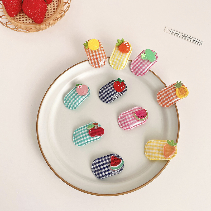 新しい韓国の子供のヘアピンのグリッドのヘアピンの女の子の宝物の漫画の果物の頭のトップのクリップの女の子のbbクリップの髪飾り