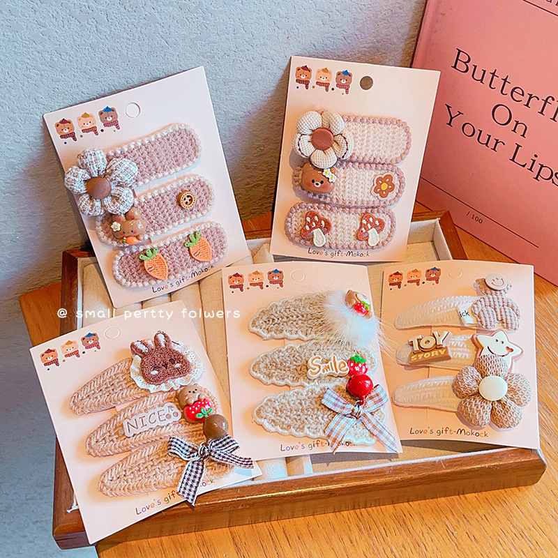 赤ちゃんの超小さいサイズのbbはかわいい布芸の女の子のサイドのヘアピンを挟みます。