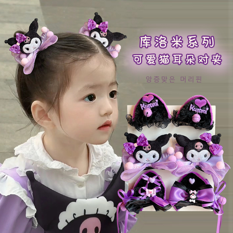 クロミの子供のかわいい猫の耳のヘアピンの女の子の蝶結びのロリータの頭飾りの赤ちゃんは髪を傷つけません。