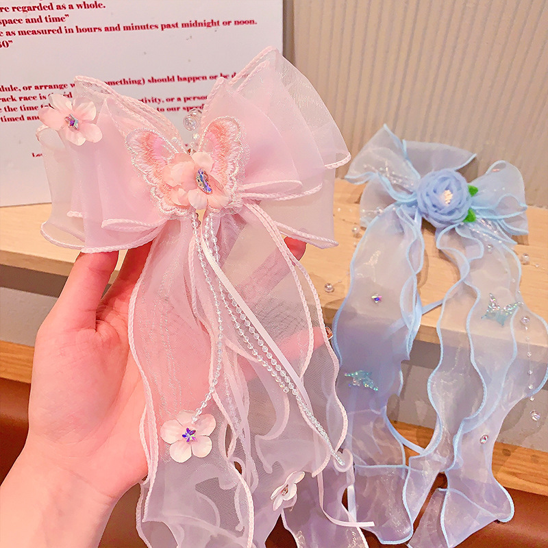 子供の髪のカチューシャのリボン2025の新型の王女の蝶の花輪の頭飾りの小さい女の子の超仙は頭のカチューシャを締めません。
