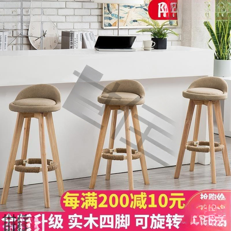 ファブリックハイチェア回転式バーラウンドスツール無垢材チェアリフトシート高センチメートル