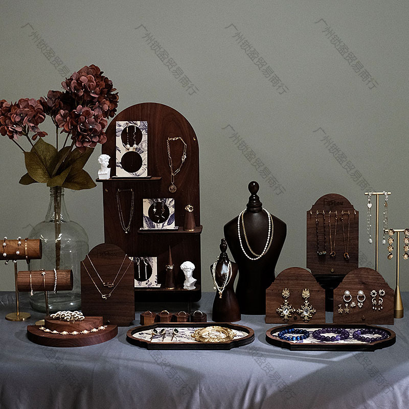 ジュエリーディスプレイスタンドレトロセットウォールナットブレスレットスタンドイヤリングボードイヤリングネックレススタンドジュエリーディスプレイ小道具
