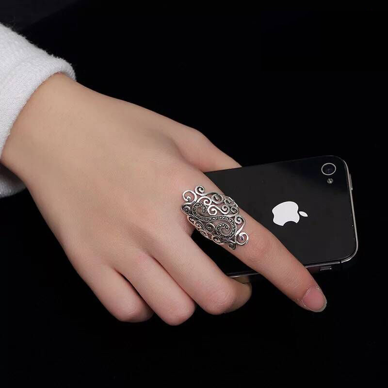 古典的なs925純銀指輪はレトロで古いファッションの個性的な透かし彫り模様の広い面の大気の人差し指の指輪です。