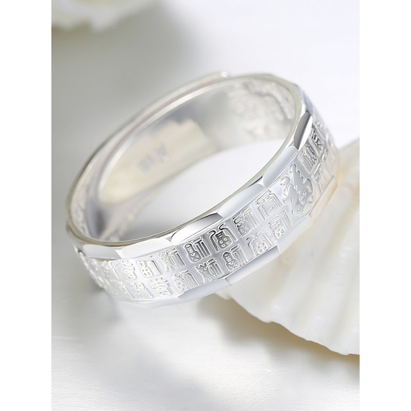 新しいファッションの銀のブレスレットの光の凹面の男女の復古の心は銀の腕輪の刻字の経文の開口部の経典の復古を経ます。