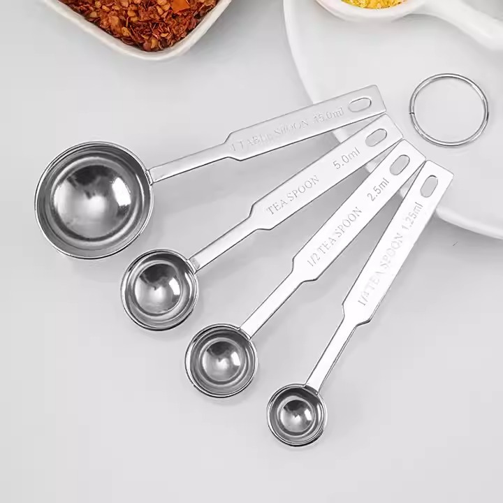 ステンレス製目盛り付き計量スプーン4点セット ケーキ、粉ミルク、コーヒー、ベーキングツール、調味料計量スプーンセット