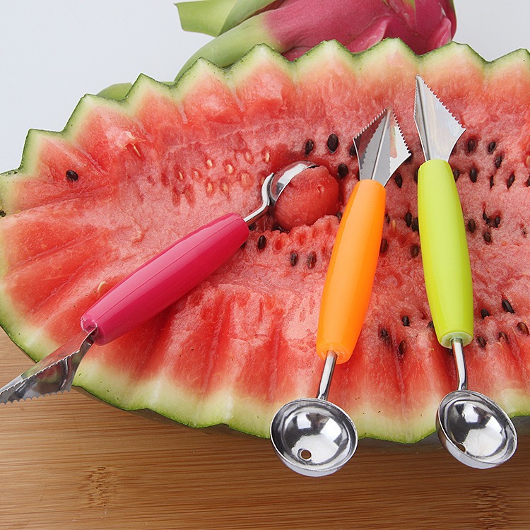 メーカーのダブルヘッドのステンレスの果物の彫刻器の彫刻刀の果物のプロセッサのダブルヘッドのボールのスプーンのスイカのボールを掘る器