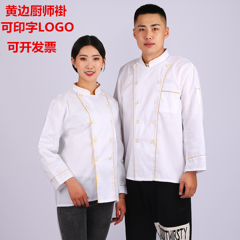 料理人の作業服の長袖は秋冬服のホテルの飲食店の後で台所の食堂の飲食の工装の料理人の服を厚くします。
