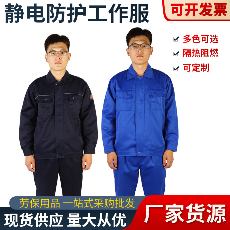 静電気作業服酸アルカリ防止ガソリンスタンド工服耐摩耗性クリーン男性工装反射ストリップセット長袖労働保護服
