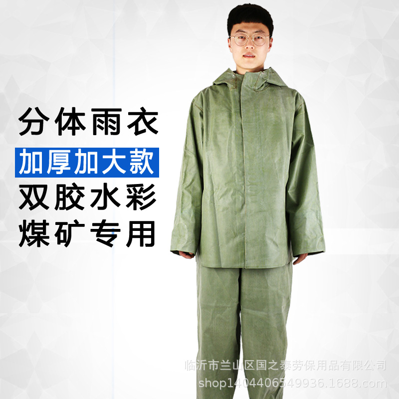 双ゴム水彩作業服分体レインコート軍緑炭鉱労働保護レインコートを厚くして防水防風を包んで郵送します。