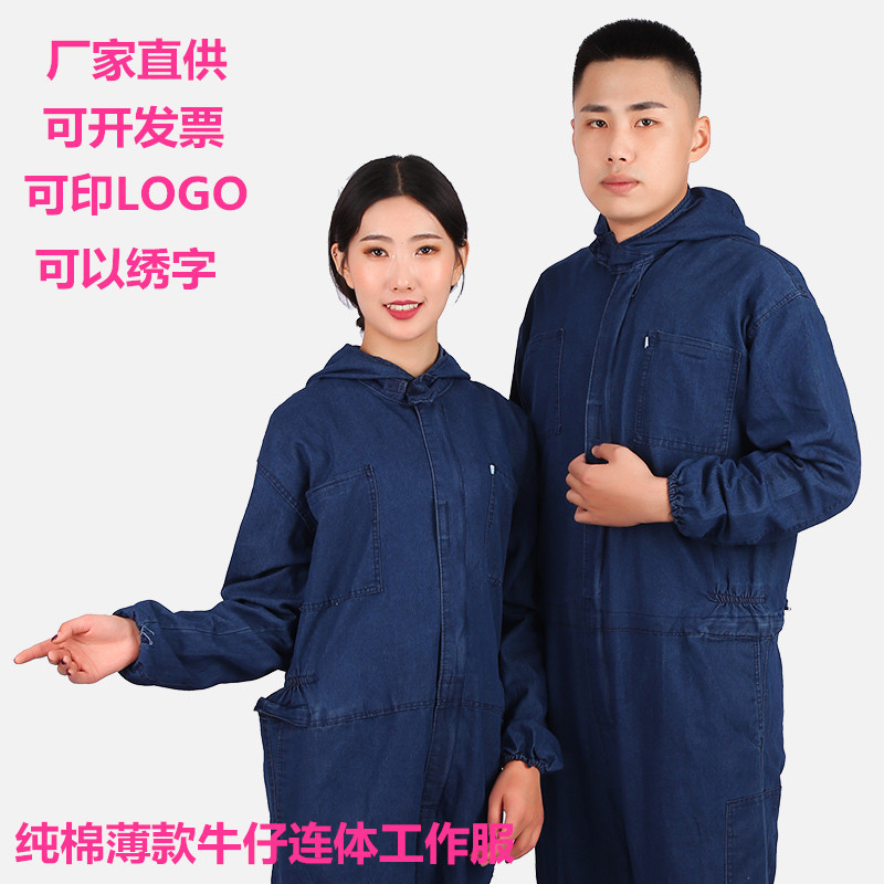 夏の長袖の薄いタイプの水洗いデニム作業服綿半袖工装男性電気溶接服労働保護作業服セット