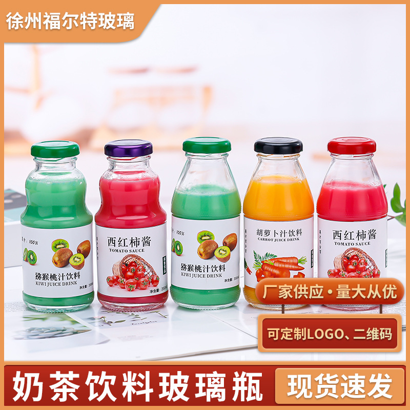 卸売厚手ガラス飲料瓶透明ジュース瓶生乳瓶仙炖飲料空瓶ミルクティー鉄蓋ミルクティー瓶