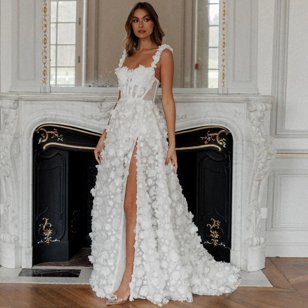 アマゾンの新型女性のシンプルなウェディングドレスA字の長いストラップのスリムなドレス