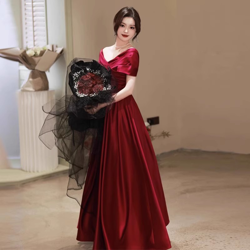 敬酒服の小さい花嫁のワインレッドの結婚婚約服のタキシードの女性の宴会