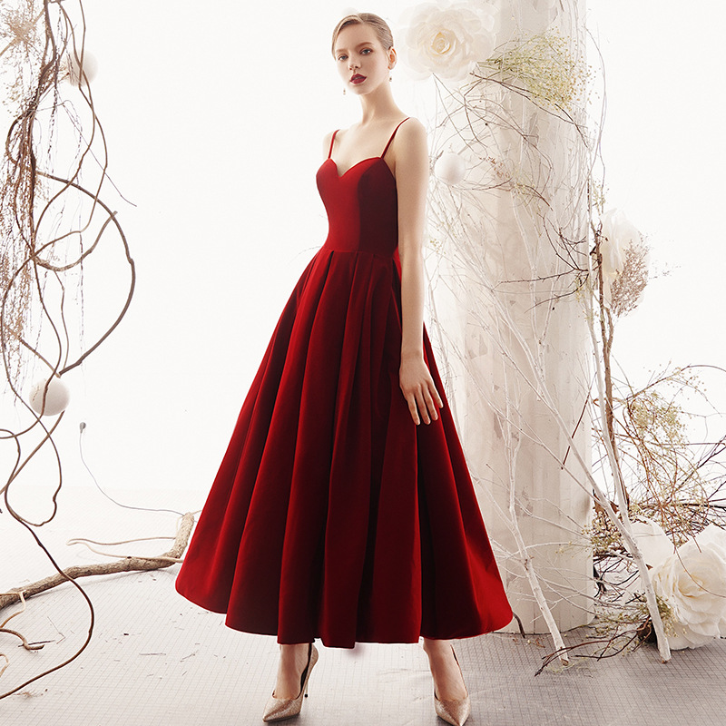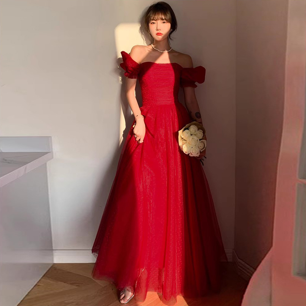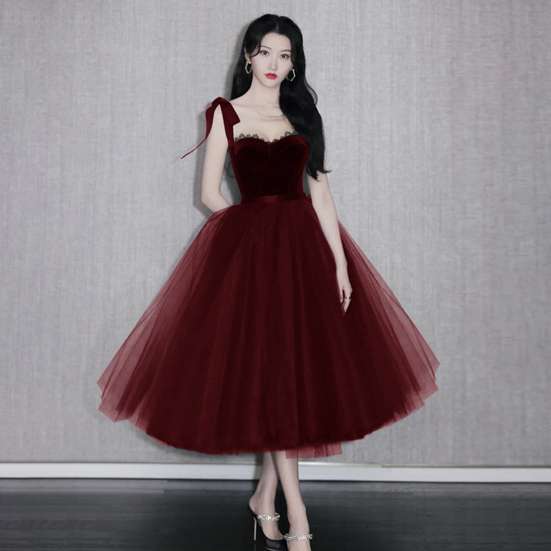 赫本風のドレス女性アマゾンの新型高級ワインレッド司会者名媛成人ワンピースメーカーが直接承認した