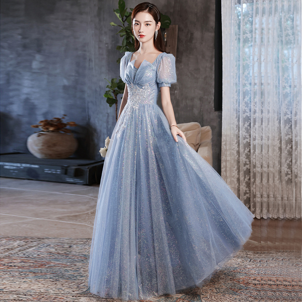 夜のドレスを司会しています。女性の中袖2023新型高級合唱公演年次総会の長い夜のドレスです。