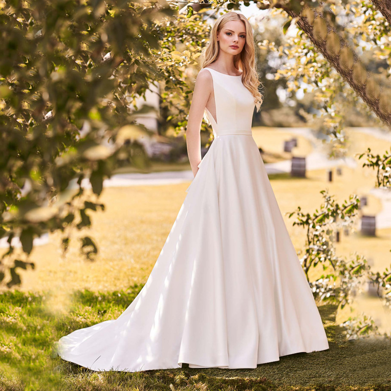 外国貿易の元のウェディングドレスの外の単のサテンの簡単なサテンのウェディングドレスの2021新型の赫本はやせています。
