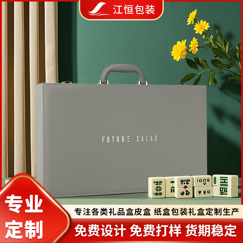 絶妙なボードゲーム麻雀トランプポータブルレザースーツケーステキサスホールデムポーカーチップ収納PUレザーボックスビジネスフリップギフトセット