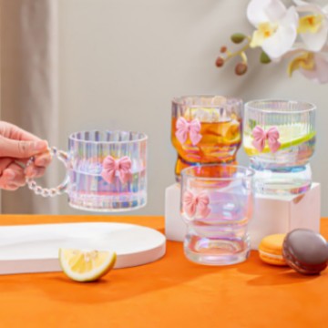 Jiajia ギフト蝶映雪ハンドル付きカップ大きな耳リングガラスウォーターカップビールカップホームコーヒーカップ
