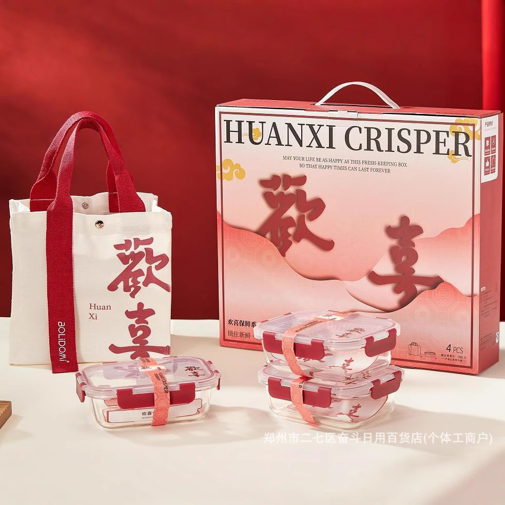 ハッピーフレッシュボウル 4点セット 高ホウケイ酸ガラス 密閉型 高価値弁当箱 サラリーマン弁当箱卸売