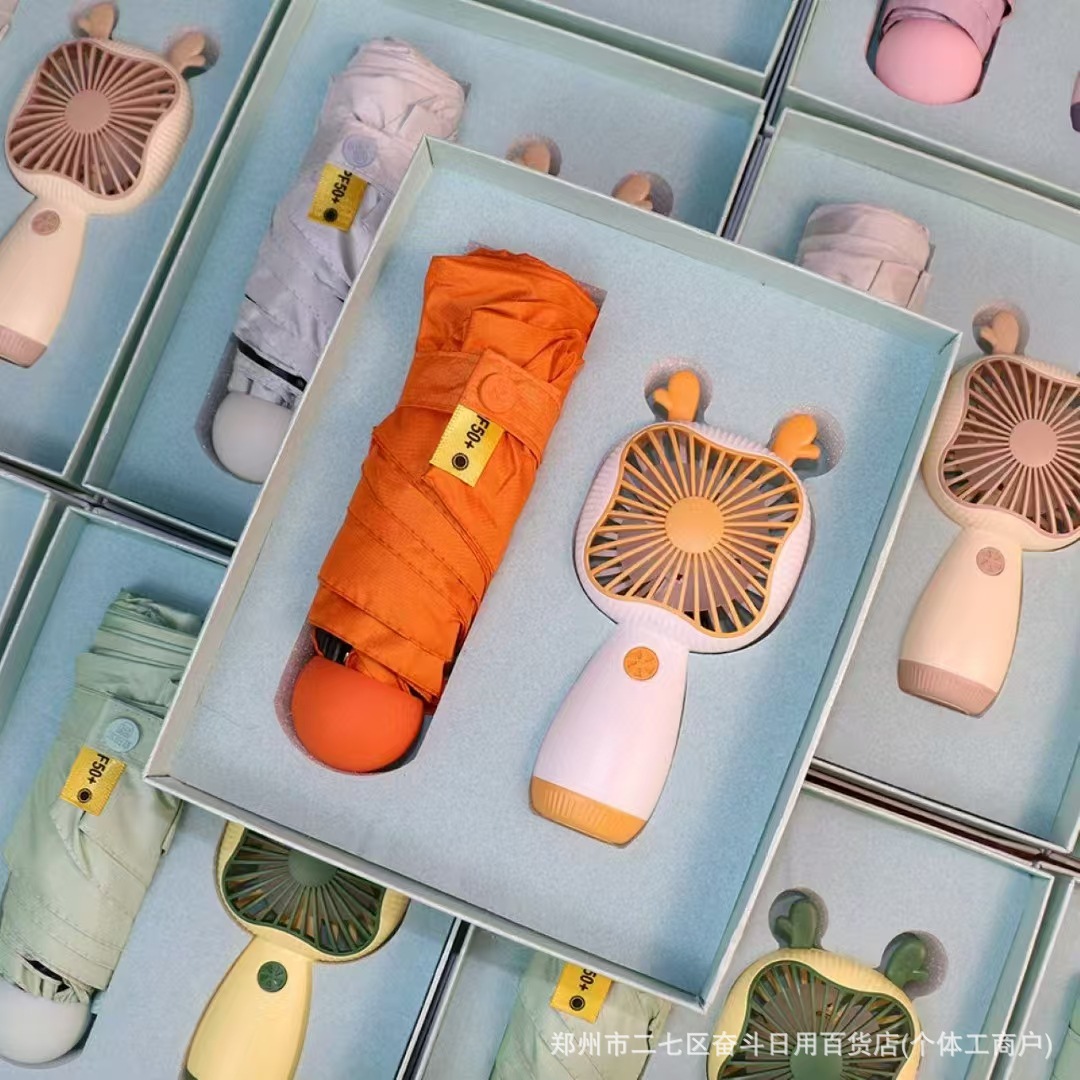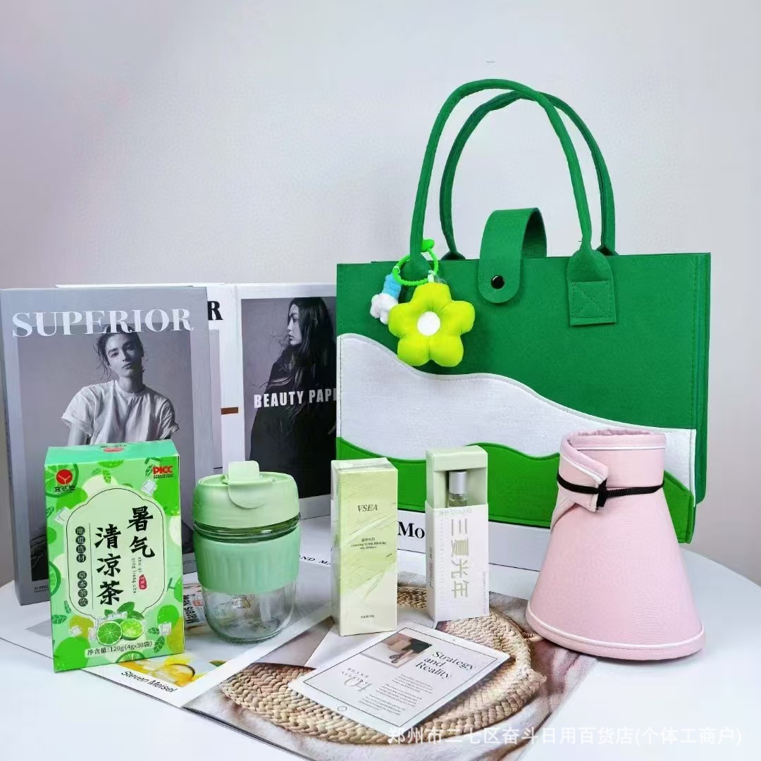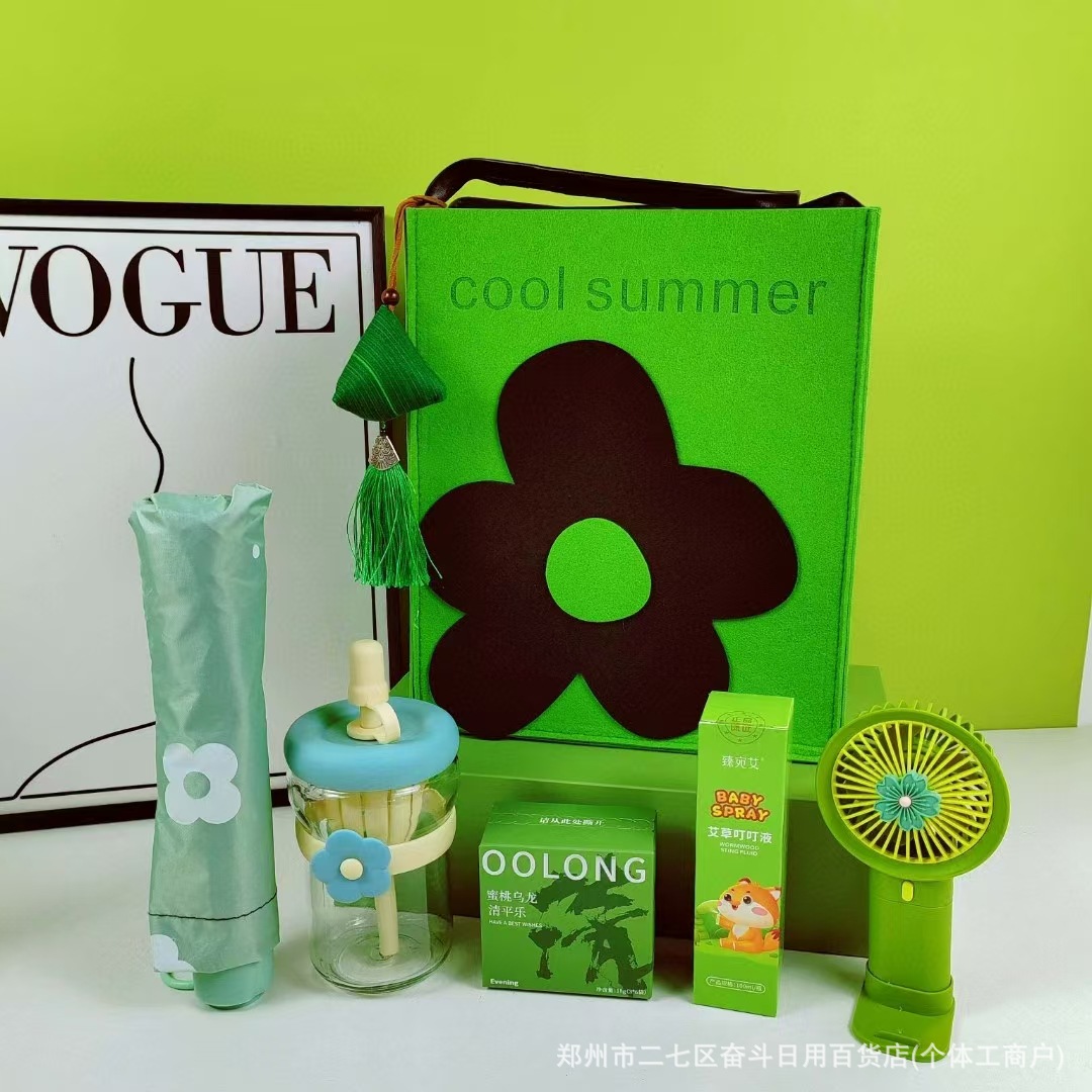 夏のエネルギーパック、お土産、携帯用小型扇風機、化粧品袋、液体タオル、ダブルドリンクカップ