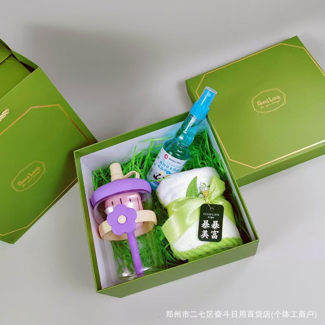 サマーフォレストお土産セット 花ストローカップ 蚊よけ 花露水 スズラン タオル ギフトボックス 従業員福利厚生