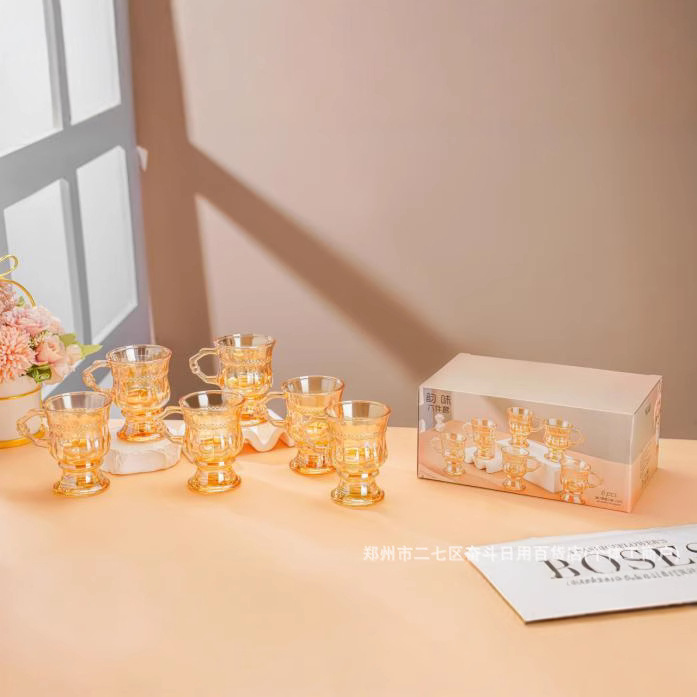 Yi Gift 風味のある6ピースセット、高価値のエンボスジュースカップ、軽くて豪華なコーヒーカップ、6ピースジュエリーショップギフト