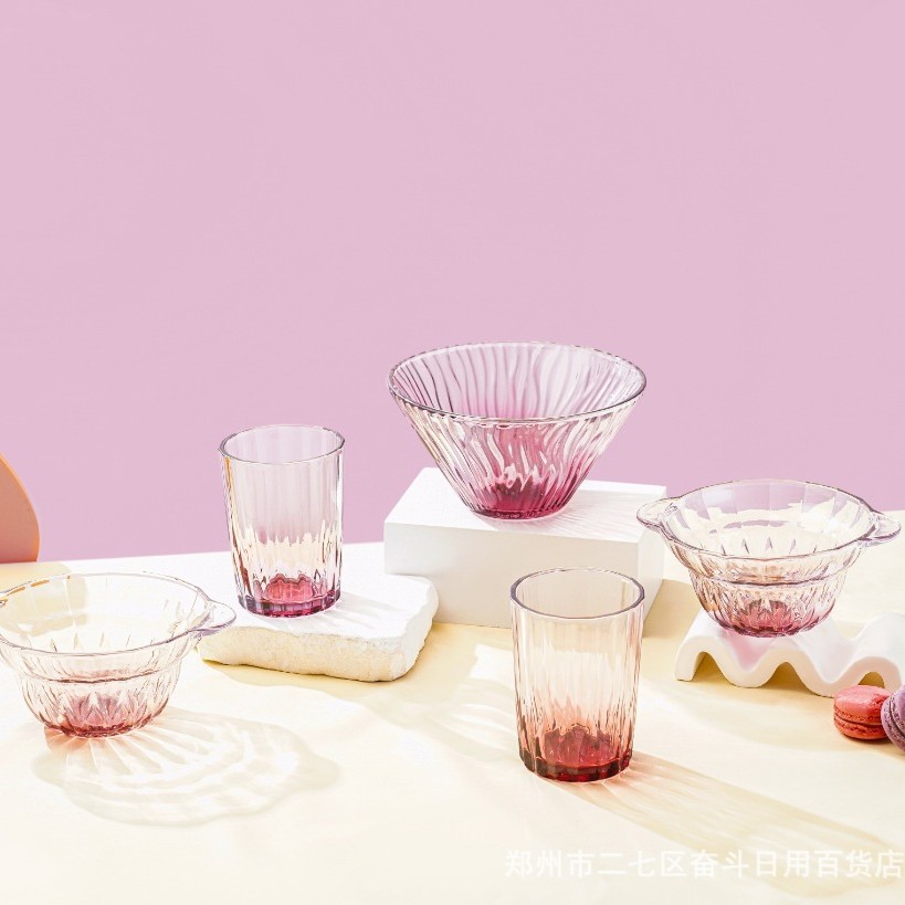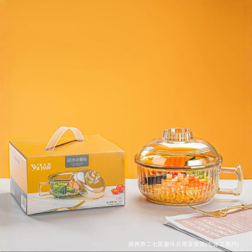 1 ギフト高価値ガラス縦模様インスタントラーメンボウル蓋付きサラダデザートボウルインターネット有名人食器オープニングギフト卸売