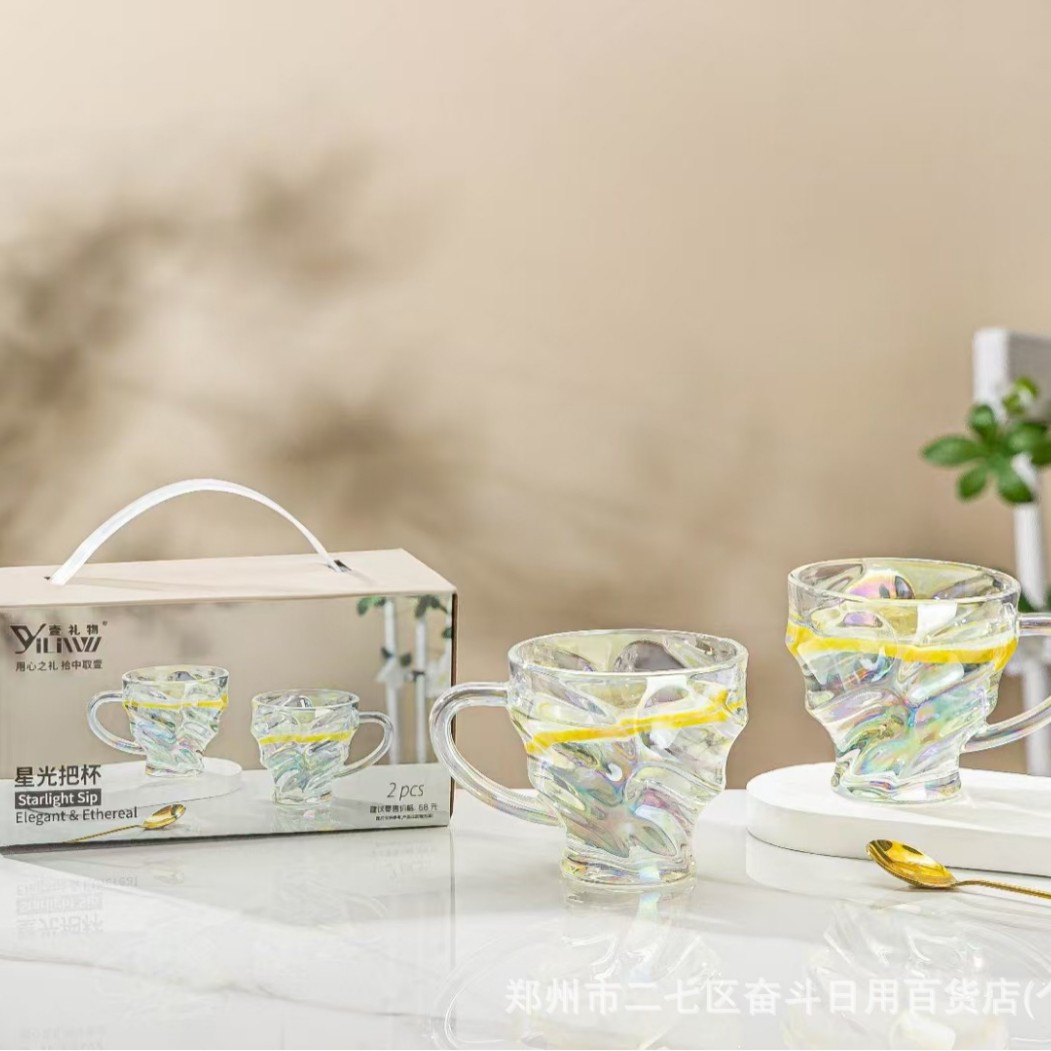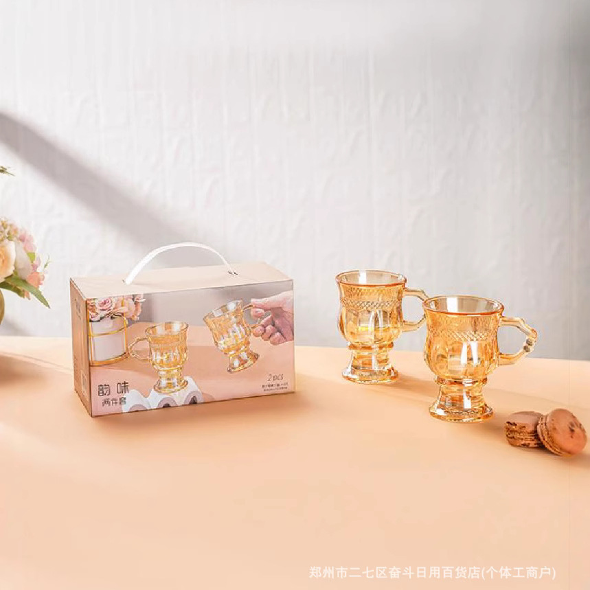 1 つのギフトの魅力 2 点セット琥珀レトロエンボスガラス高価値ワイングラスクリエイティブコーヒーカップホームハンドル