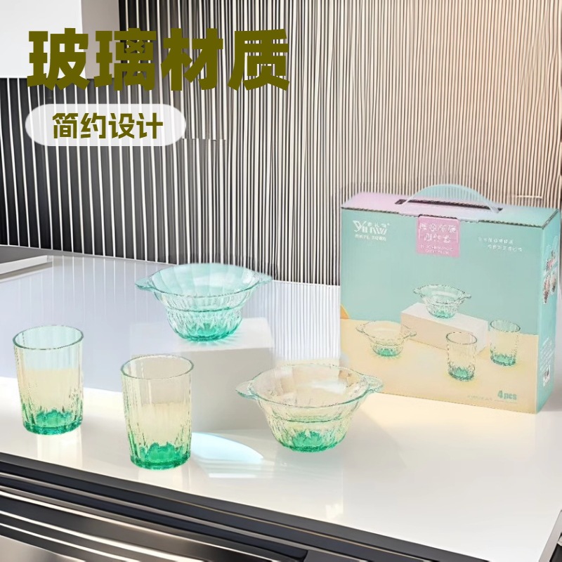 ギフト モダン カップとボウル 4 点セット ホーム フルーツ サラダ ガラス ボウル セット ジュエリー ホームテキスタイル ストア クリスマス ギフト