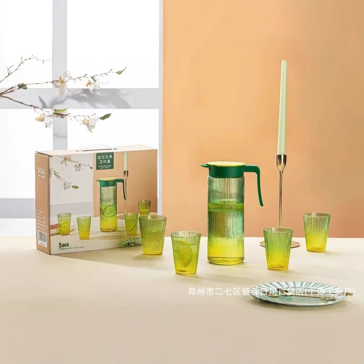 高ホウ素スターライトウォーターセット5点セット、軽い高級感、高ホウ素シリカ、高温耐性コールドケトル、家庭用カップセット、大容量