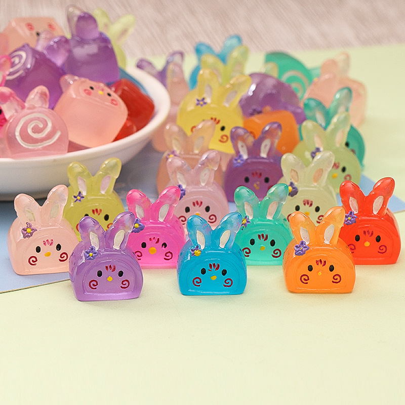 夜光の立体のウサギのスイスは潮を巻いてdiyの子供のおもちゃの子供機の髪飾りのヘアピンの樹脂の置物の卸売りを遊びます。