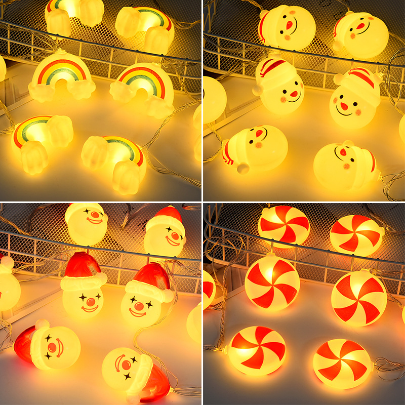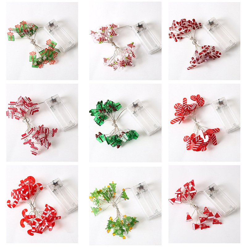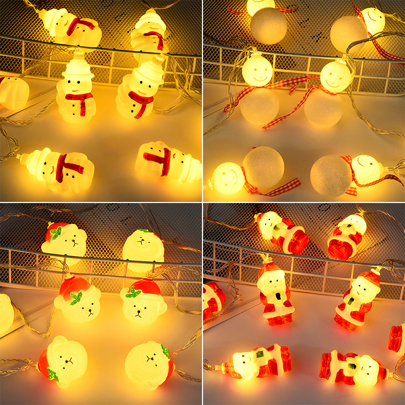 お祭りの雰囲気のギフトボックス、花の装飾、ライトストリング、クリスマスペンダント、銅線ライト、サンタクロース、雪だるま、鹿の頭のカラフルなライトストリング