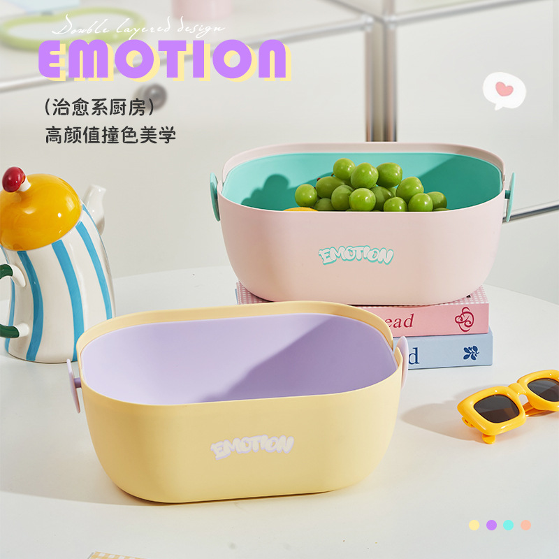 1688持ち手付きプラスチック製デザイン性のある二層式キッチンフルーツ洗い・野菜準備用ドーパミン水切りかご