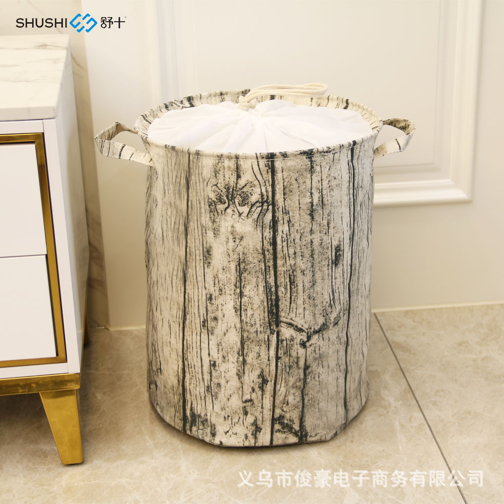 舒十可折り畳み式洗濯収納桶シンプルでファッション的な綿麻の大きいサイズの丸い桶は、蓋付きの洗濯かごから弾きます。