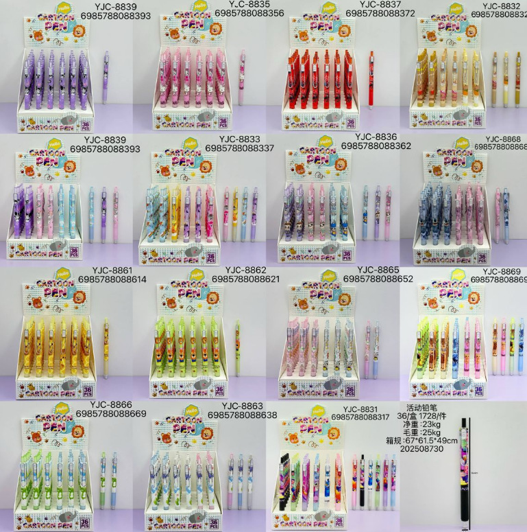 新型アニメ創意活動鉛筆学生は自動鉛筆を押して書きます。