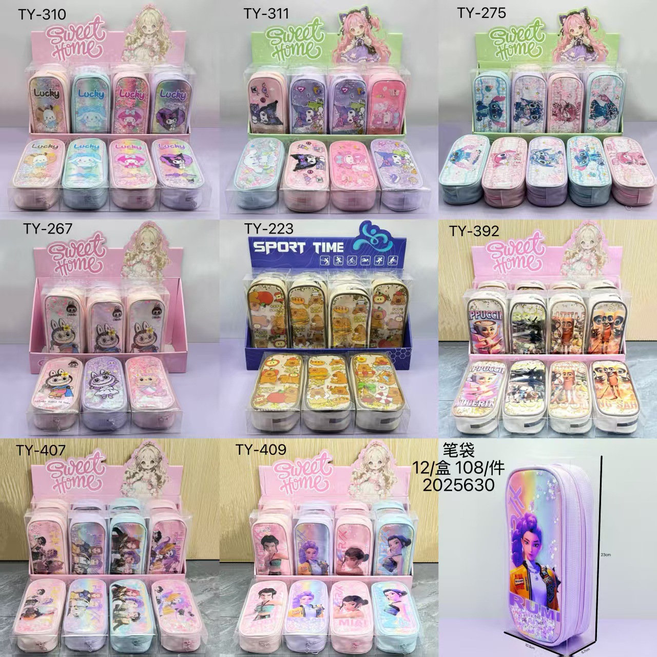かわいい漫画二重ジッパー付きペンバッグ小学生趣味大容量鉛筆バッグ少女心文房具バッグ賞品バッチ