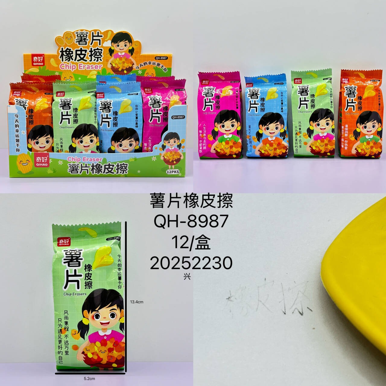 クリエイティブなポテトチップ型消しゴム、きれいに拭ける、子供用文具、小学生、かわいい象の皮の漫画鉛筆消しゴム