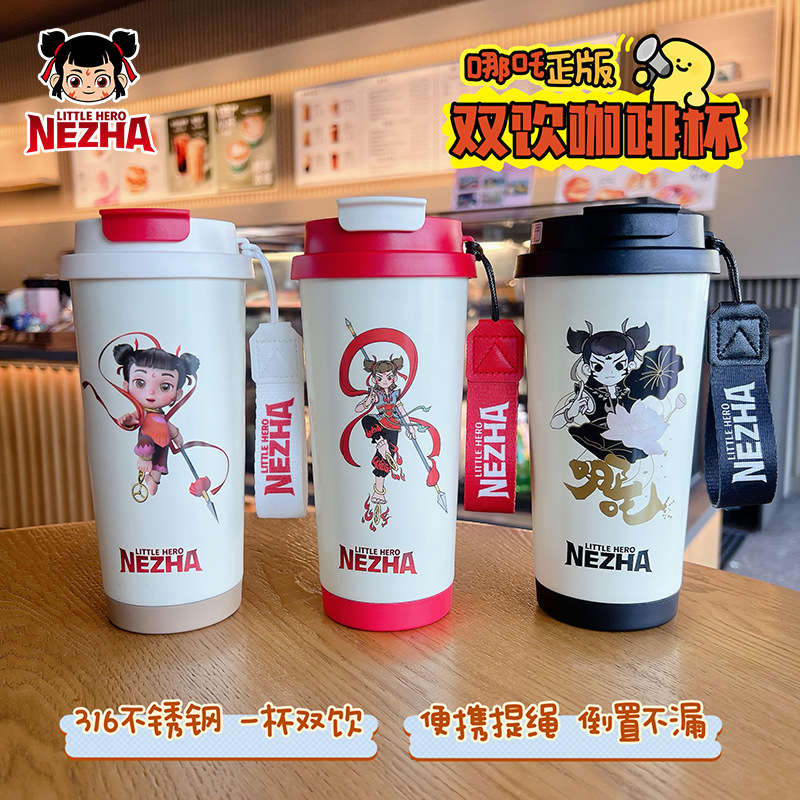 ジュニアヒーロー Nezha 魔法瓶カップ 316 ステンレス鋼インナーカーダブルドリンクコーヒーカップポータブルワンカップダブルドリンクカップ