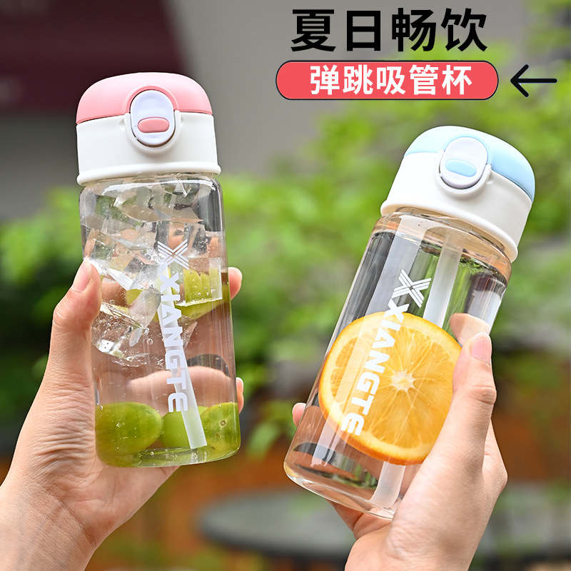 夏の学生かわいい携帯アウトドアスポーツ水筒プラスチック水筒学生バウンスストロー水筒プレゼント卸売り