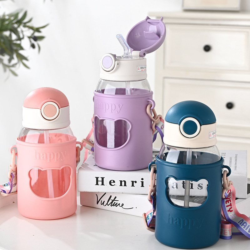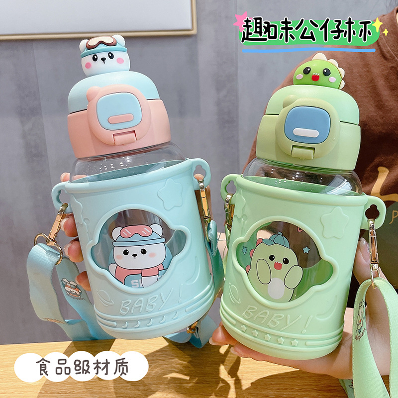 夏の漫画プラスチックカップ屋外携帯ストラップ付きストローカップ子供水筒跳ねるカップ工場水カップ卸売