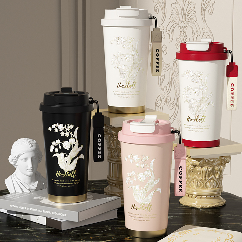 すずらんのコーヒーカップの保温カップの男性の女子学生の高い顔の値は携帯してコップの高級な精巧な冬のコップの卸売りに随行します。
