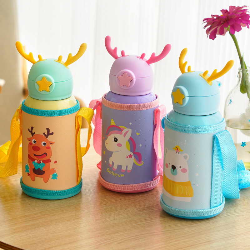 子供316ステンレス保温カップ鹿角ストローカップ知能顕温カップセット子供ポットプレゼント卸売り