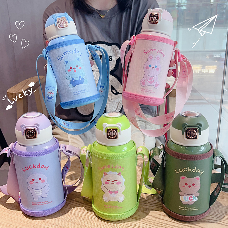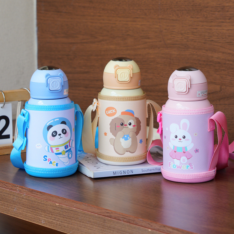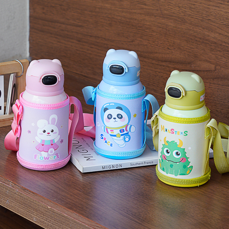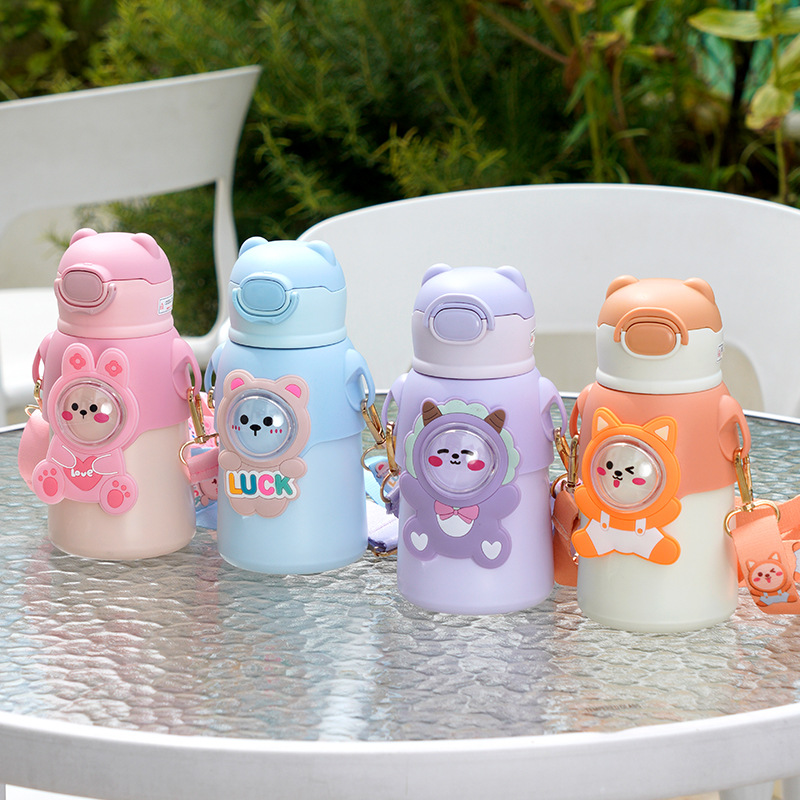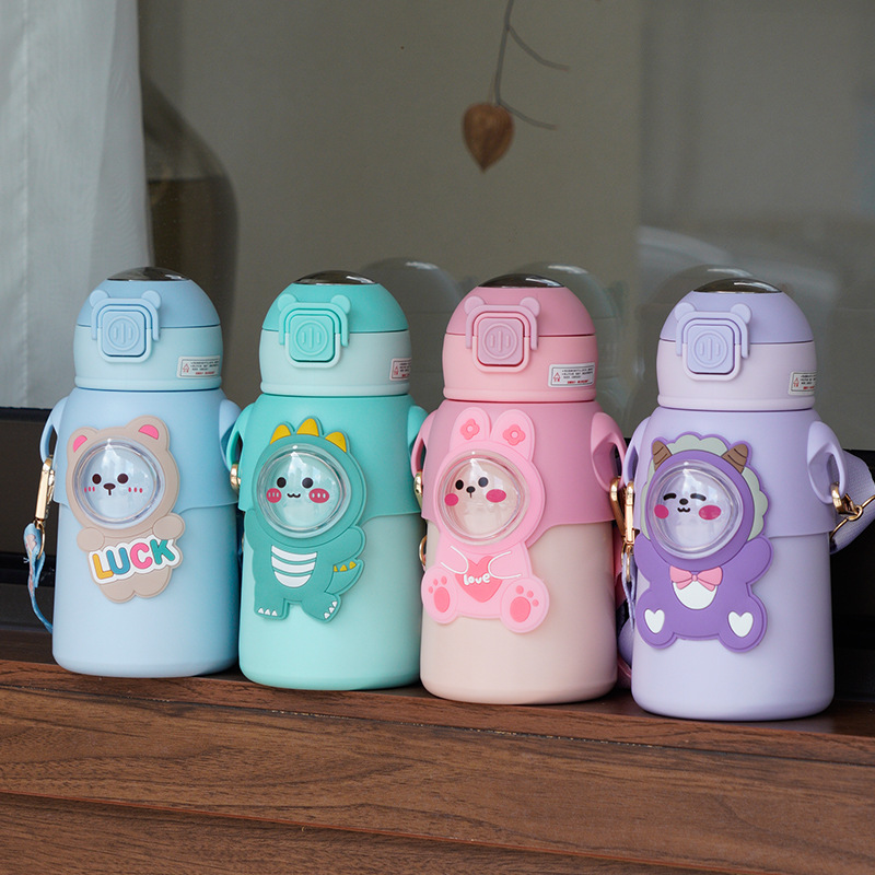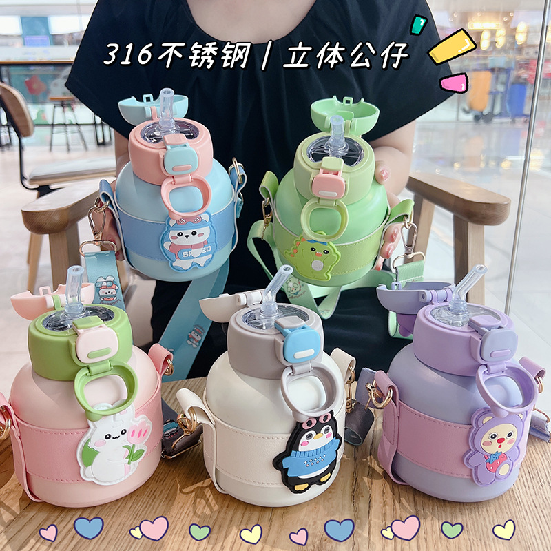 アニメ児童保温カップ316ステンレス大腹ストラップ付きストロー保温カップ携帯高颜値カップ