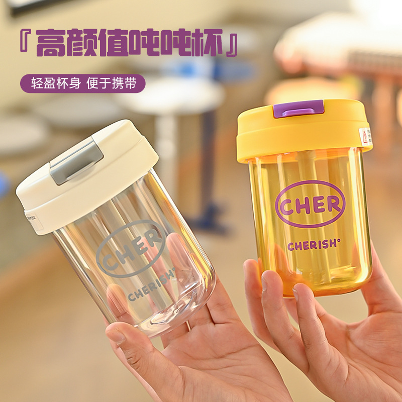新しいミニトンカップ子供学生プラスチックカップ携帯ストローカップかわいい高颜値プレゼント大腹カップ