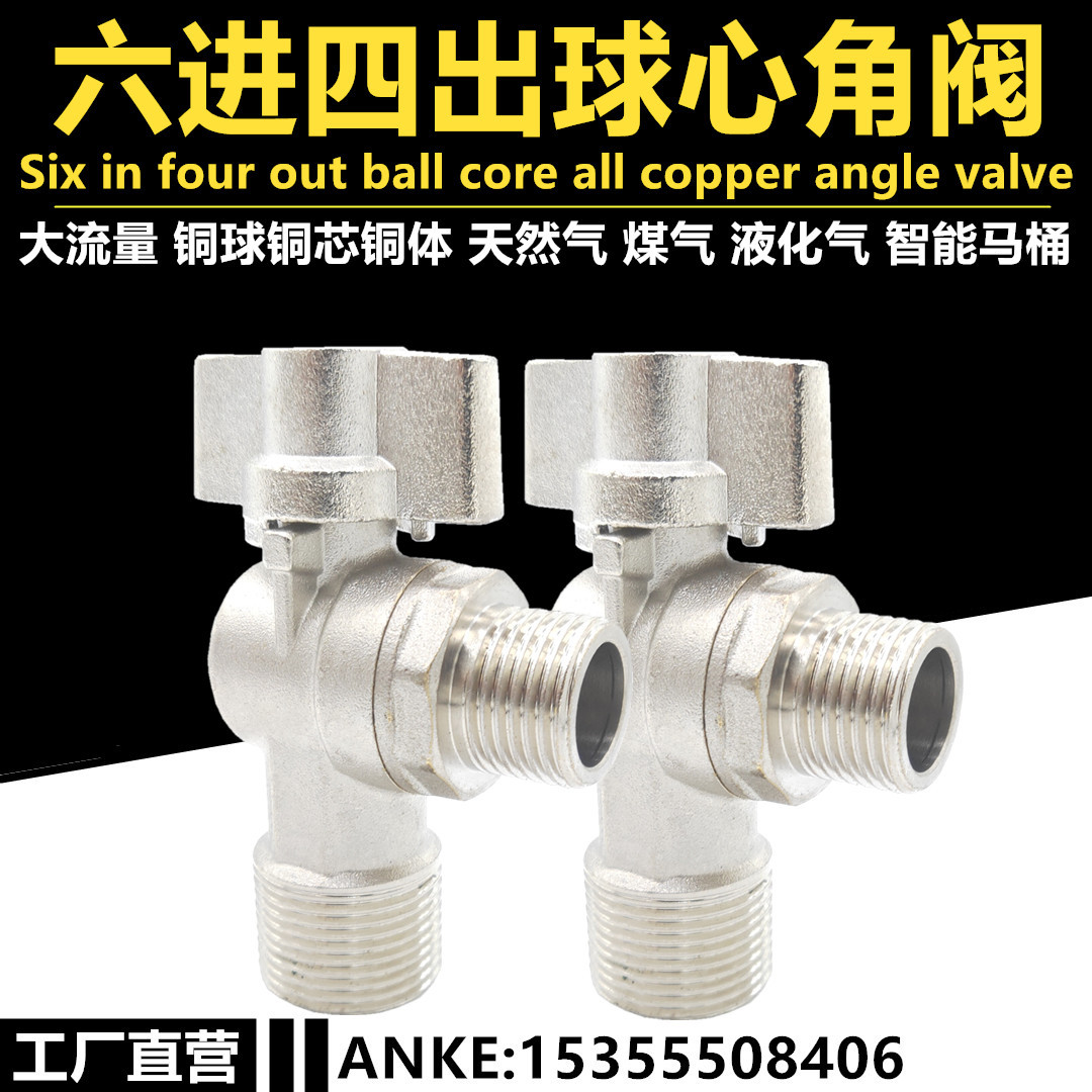 6変4球心角弁天然ガス液化ガス便器冷熱壁掛炉給湯器6進4出角弁